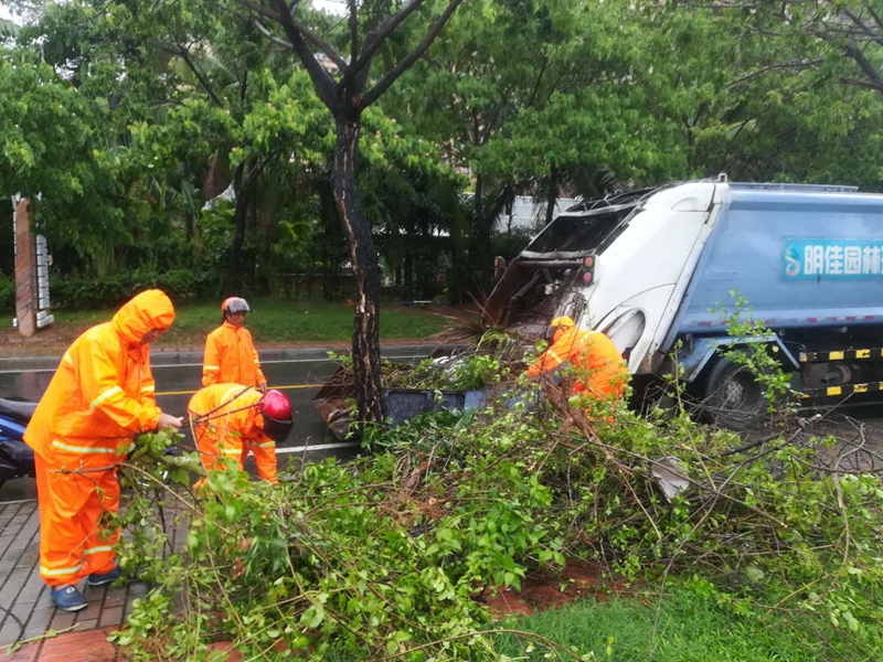 今天上午,三亞、陵水依舊大雨連綿,道路上有少量的積水,集團(tuán)公司各區(qū)域負(fù)責(zé)人靠前指揮,組織人員冒雨對(duì)臺(tái)風(fēng)過(guò)后的主次干道、綠化帶進(jìn)行大清理,車輛、人員及時(shí)上路,對(duì)道路堆積泥沙進(jìn)行沖洗,對(duì)散落垃圾、斷裂樹(shù)枝樹(shù)葉進(jìn)行全面普掃清運(yùn),確保道路疏通整潔。園林綠化部迅速行動(dòng),對(duì)三亞鳳凰路、三亞灣路沿線的倒伏樹(shù)木進(jìn)行扶正、清理折斷樹(shù)木。此外,公司還為每個(gè)水域保潔員配備救生衣,在確保安全的前提下做好河道、海域等水面垃圾清理工作,禁止工人風(fēng)雨高峰期間涉水作業(yè)。
