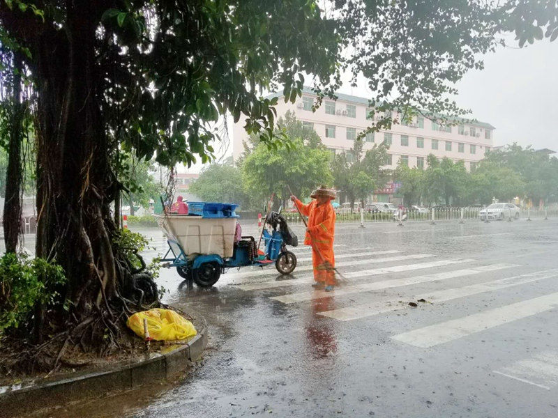 走在大街小巷上,隨處可以看到忙碌的環(huán)衛(wèi)工人,正冒雨正忙著打掃樹(shù)枝、樹(shù)葉和清理各種垃圾。