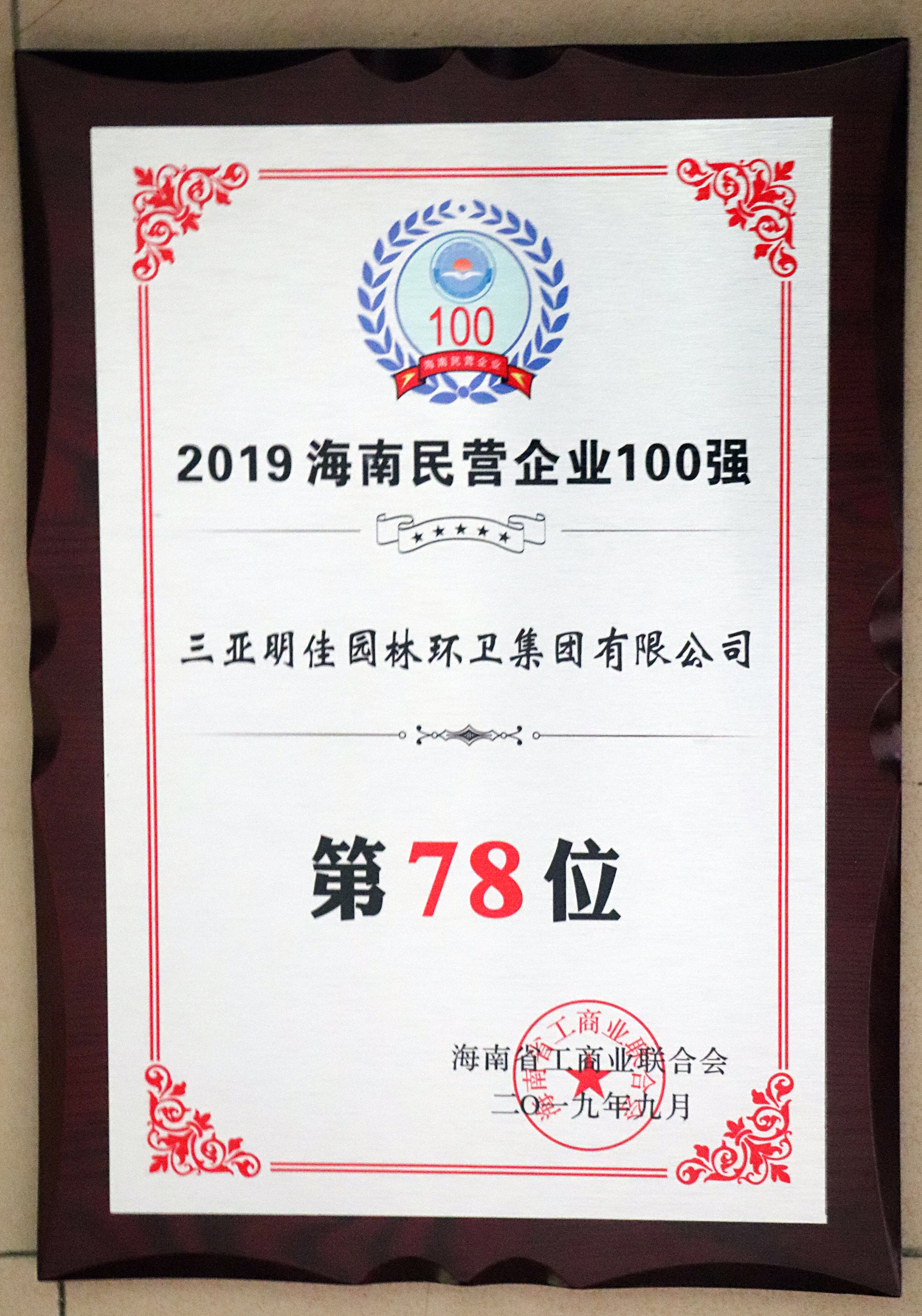 海南省工商聯(lián)24日在??诎l(fā)布2019海南省民營企業(yè)100強(qiáng),三亞明佳園林環(huán)衛(wèi)集團(tuán)有限公司名列第78位。