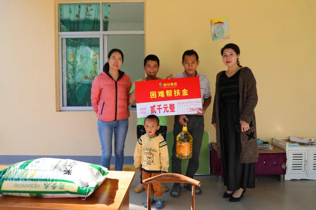 2021年1月12日,明佳集團(tuán)黨支部書記、董事長陳明,副總裁羅京軒,工會(huì)主席高斐斐,副主席李萍及婦聯(lián)主席熊牡丹一行前往慰問困難職工,為他們每人送上了2000元的幫扶金以及米、油等生活物資,還貼心地為有孩子的職工們送去一套學(xué)習(xí)桌椅。