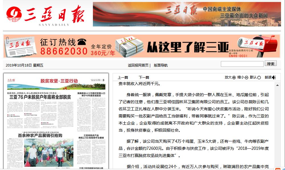 三亞日報(bào):三亞市開展全國扶貧日暨愛心扶貧大集市活動(dòng) 百余種農(nóng)產(chǎn)品展銷引搶購