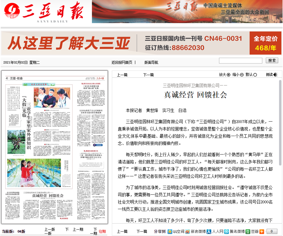 2022年5月25日下午,三亞市工商聯(lián)(總商會)召開八屆二次執(zhí)委(擴大)會議。會上,三亞明佳園林環(huán)衛(wèi)集團有限公司榮獲先進單位表彰通報,集團總裁陳云代表公司領獎并作交流發(fā)···