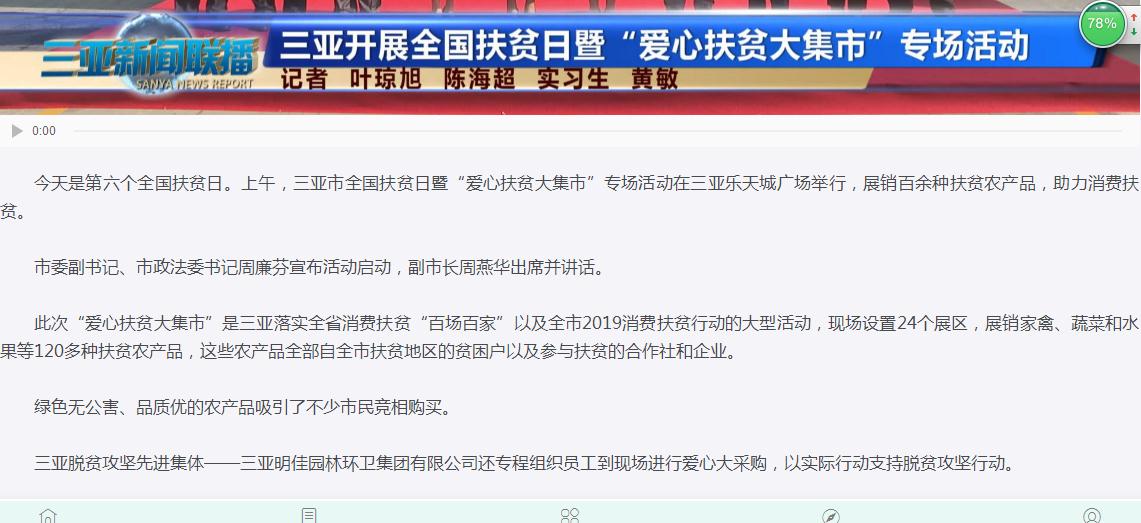三亞明佳園林環(huán)衛(wèi)集團(tuán)有限公司專程組織員工到現(xiàn)場進(jìn)行愛心大采購,以實(shí)際行動支持脫貧攻堅(jiān)行動。明佳集團(tuán)總裁陳云親自到場組織協(xié)調(diào)采購活動。