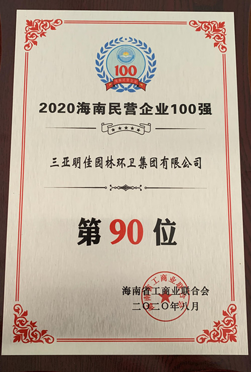 8月28日,“2020海南民營企業(yè)百強發(fā)布會”在??谂e行。三亞明佳園林環(huán)衛(wèi)集團有限公司再次入選“海南民營企業(yè)100強”榜單,名列第90位。